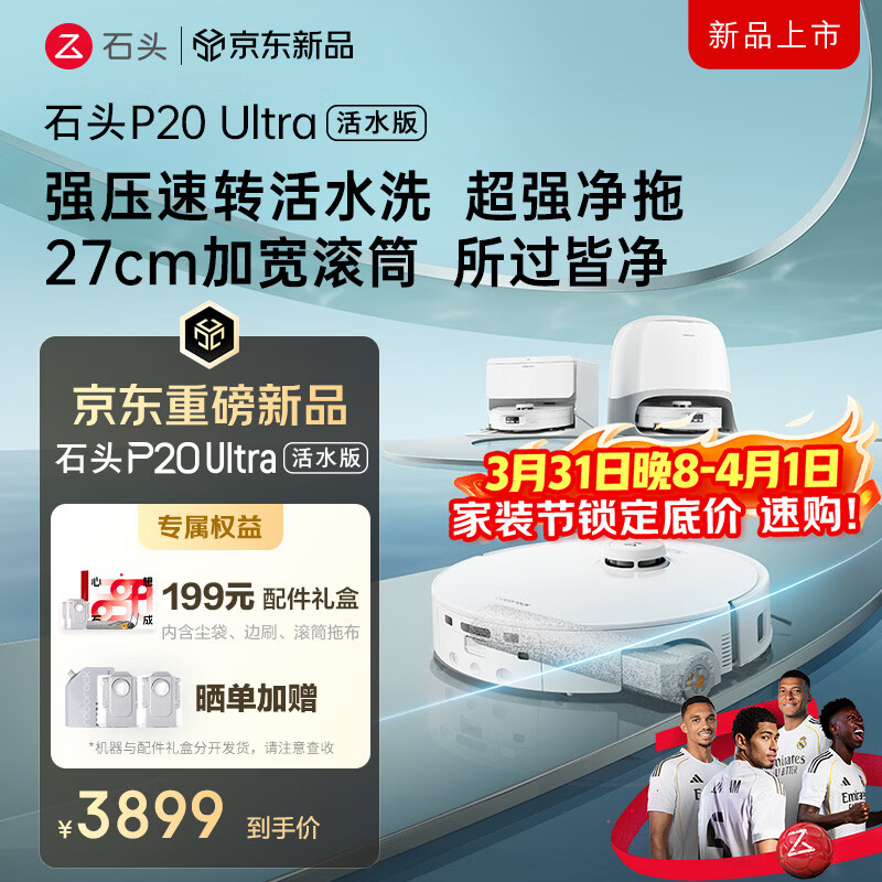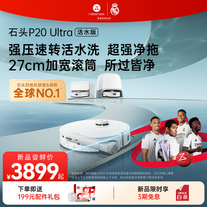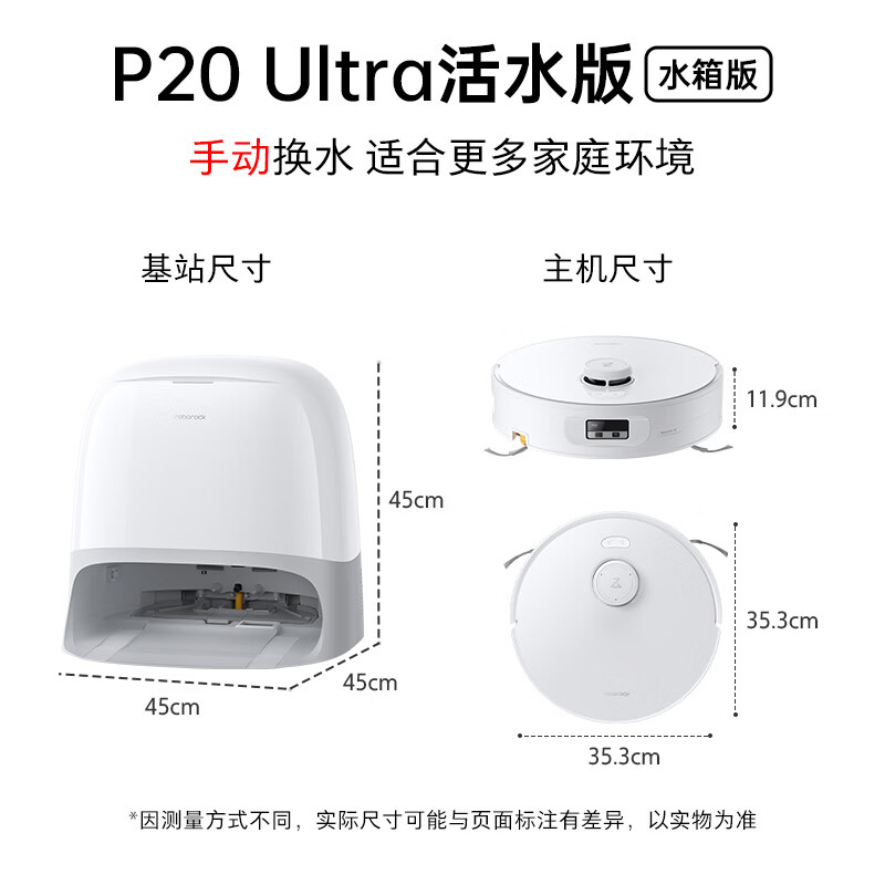 石头(roborock)扫地机器人扫拖一体 P20 Ultra 活水版 滚筒洗地机器人 自动集尘热水洗拖布擦地拖地吸尘器A2440RR