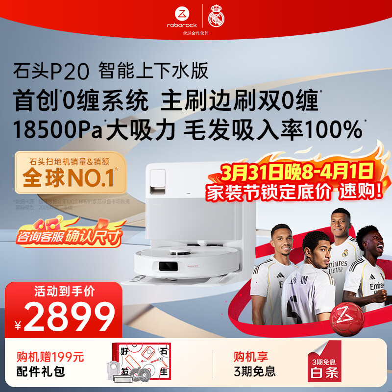 石头(roborock)扫地机器人扫拖一体 P20 自动上下水版 自动集尘洗拖布烘干补水擦地拖地洗地机吸尘器 A1690RR