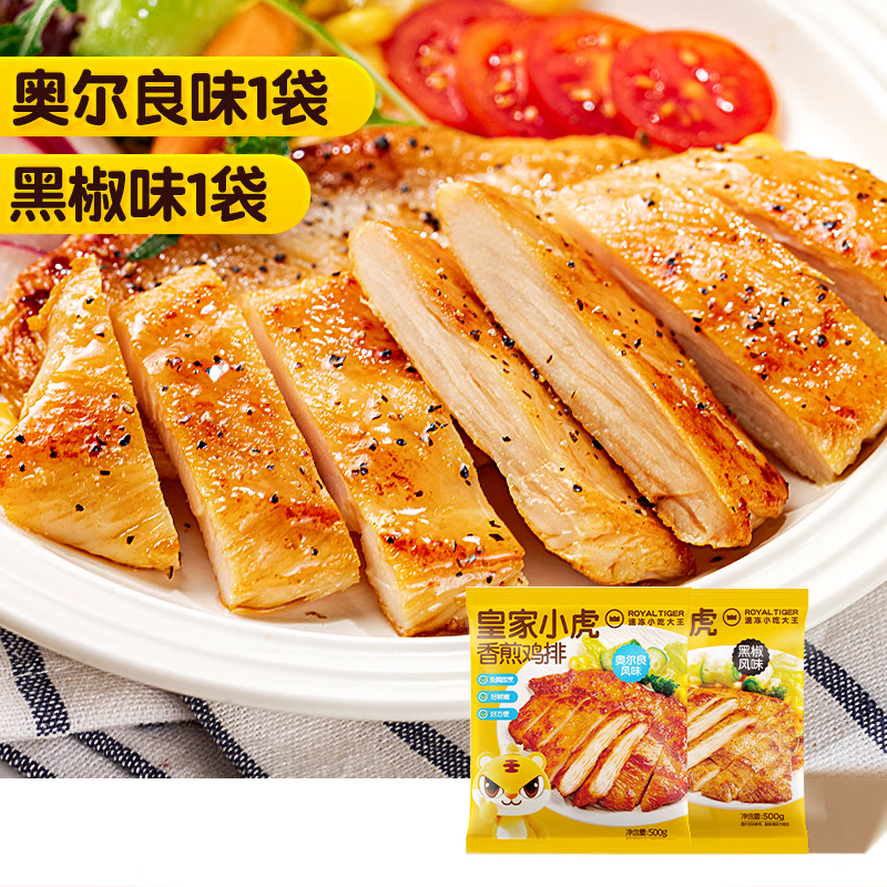 皇家小虎香煎鸡排1kg10片奥尔良黑椒味鸡胸肉早餐半成品儿童代餐源头直发