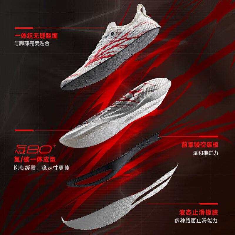 安踏马力2红蓝心跳丨全掌碳板跑鞋马拉松训练慢跑鞋 红心跳-2 41 (男8)