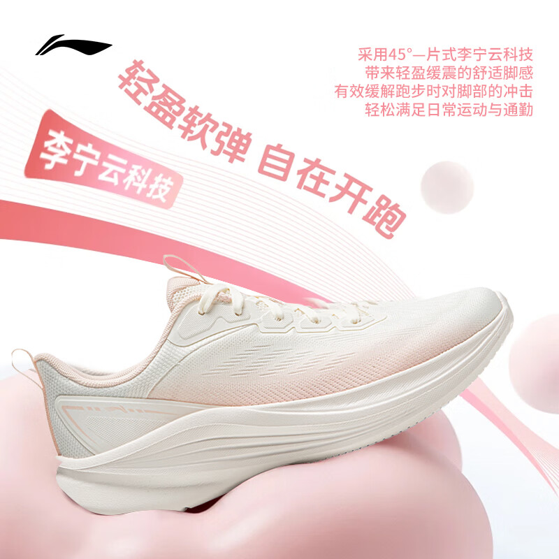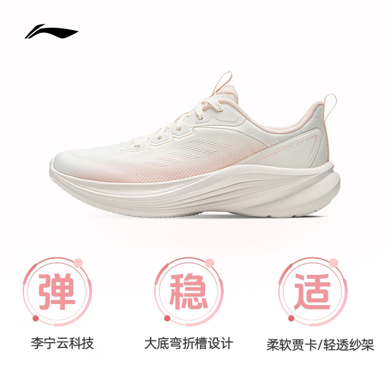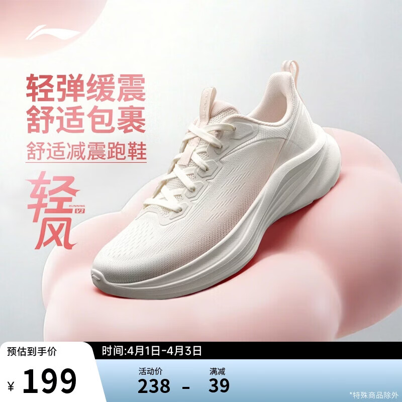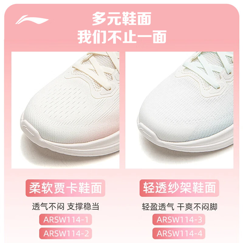 李宁轻风v3丨跑步鞋女子减震回弹新款舒适透气低帮休闲慢跑鞋ARSW114