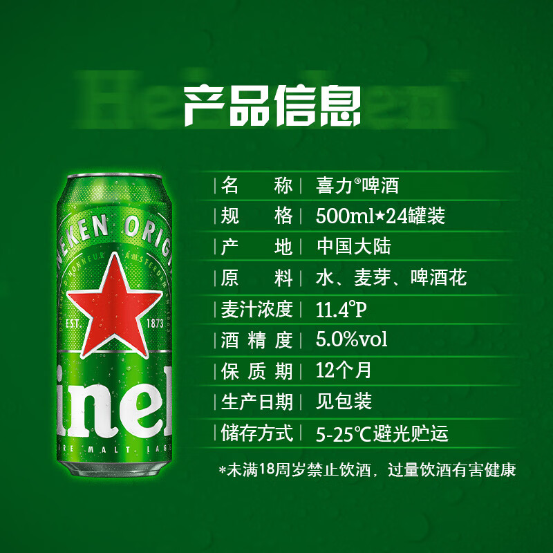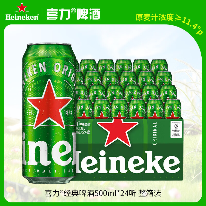 喜力经典500ml*24听整箱装 喜力啤酒Heineken京东自营 婚宴用酒