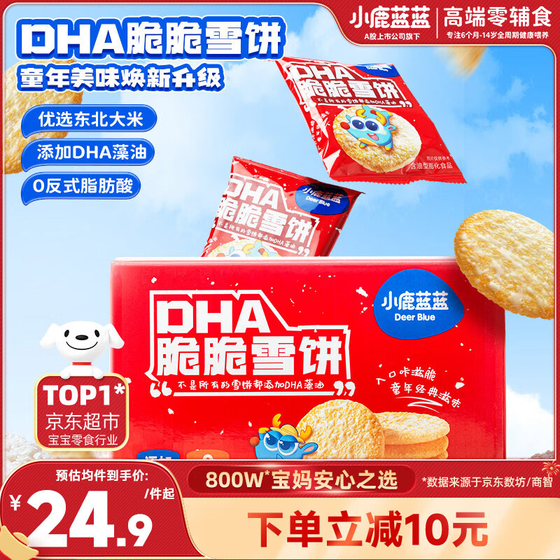 小鹿蓝蓝DHA脆脆雪饼 饼干宝宝儿童零食开学零食 雪饼囤货装500g