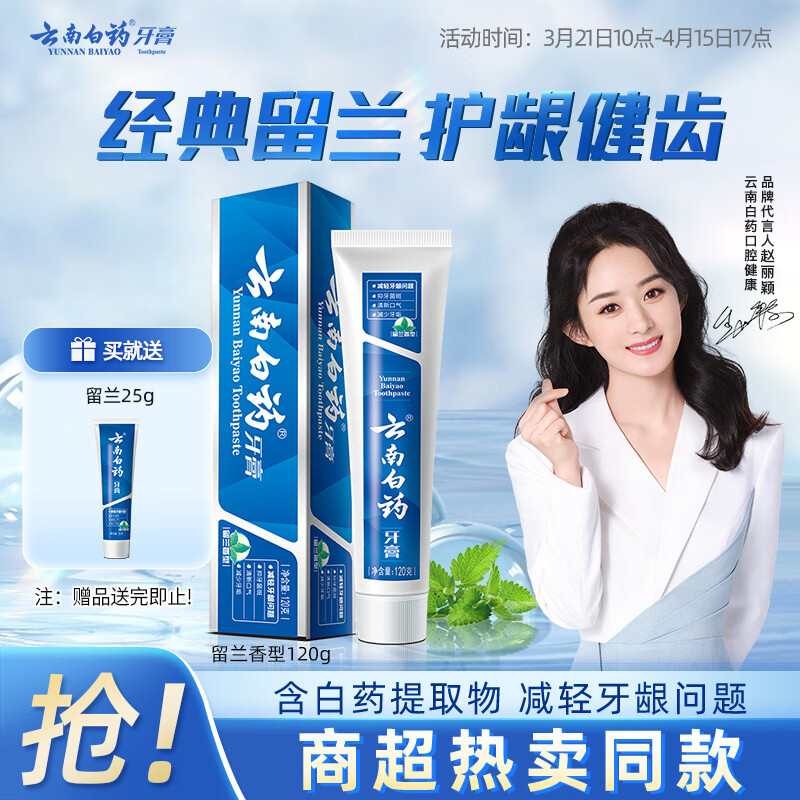云南白药经典系列牙膏 健齿护龈改善牙龈问题 清新口气留兰香型120g