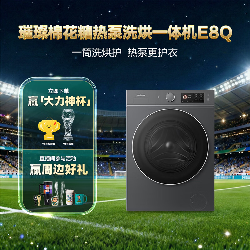海信(Hisense)璀璨棉花糖滚筒洗衣机全自动热泵洗烘一体13KG大容量全家筒活水洗WH130E8Q以旧换新补贴 京东自营
