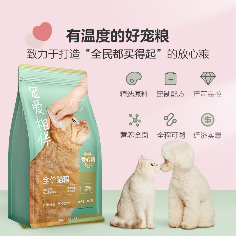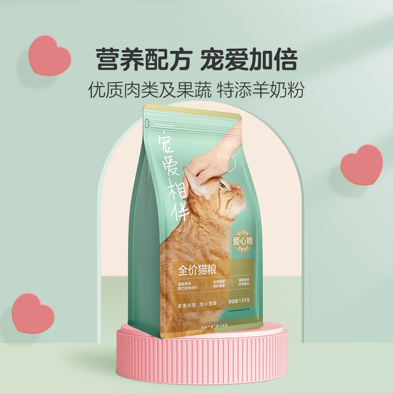 网易严选宠爱相伴全价猫粮 实惠宠物主粮成幼猫爱心公益 美毛护肠胃 1.8kg