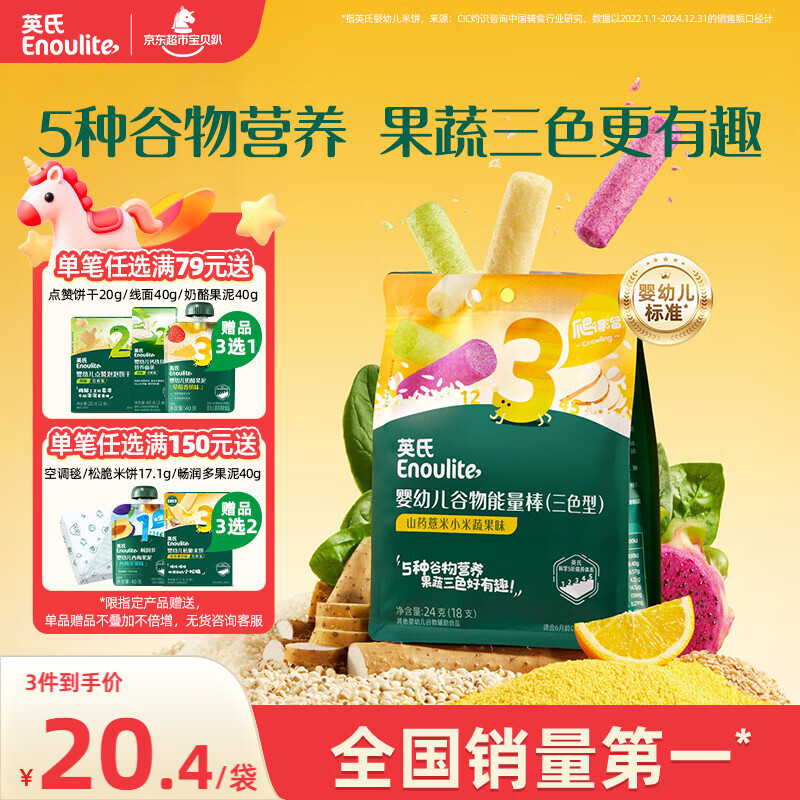 英氏(Engnice)婴幼儿谷物能量棒山药薏米小米蔬果味24g非油炸宝宝零食解馋哄娃