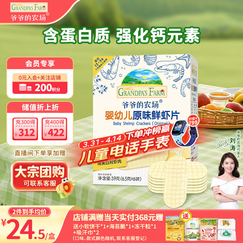 爷爷的农场婴幼儿鲜虾片原味宝宝零食儿童零食 出游哄娃39g 婴儿零食12月+