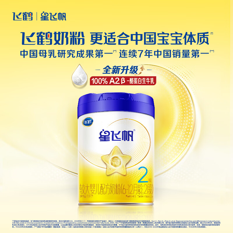 飞鹤星飞帆 婴幼儿配方奶粉 2段(6-12个月)700g*6罐 专利OPO 育儿补贴