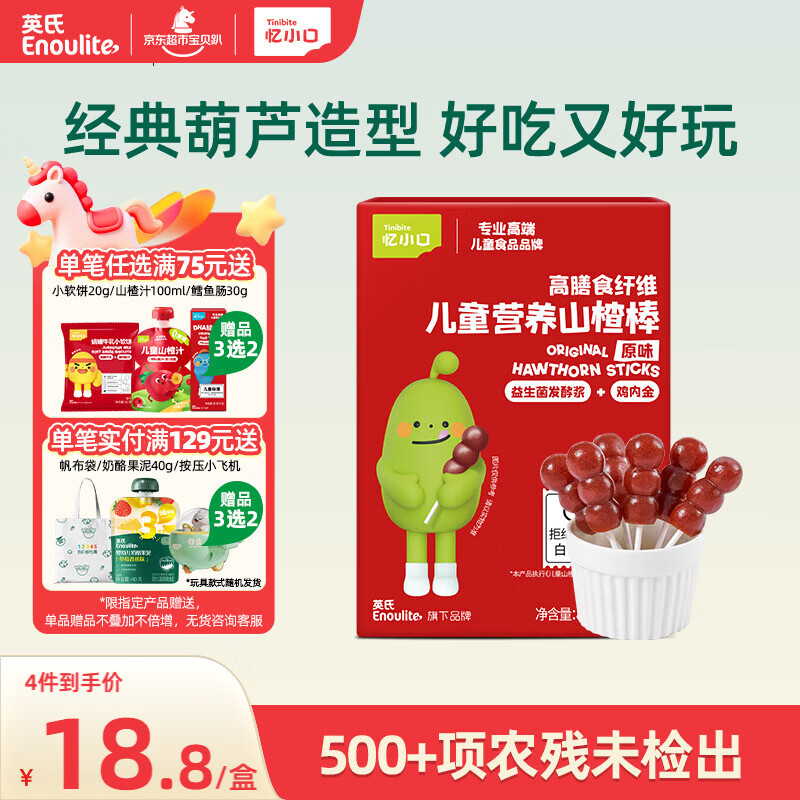 英氏山楂棒棒糖小葫芦儿童零食鸡内金解馋休闲84g鲜果打浆添加益生元
