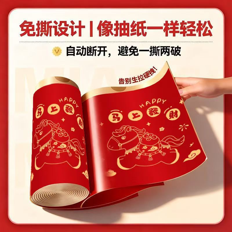 户外旅行免撕马年新款新年加厚垃圾袋厨房大号手提印花塑料袋 【马上发财】免撕垃圾袋 约100只