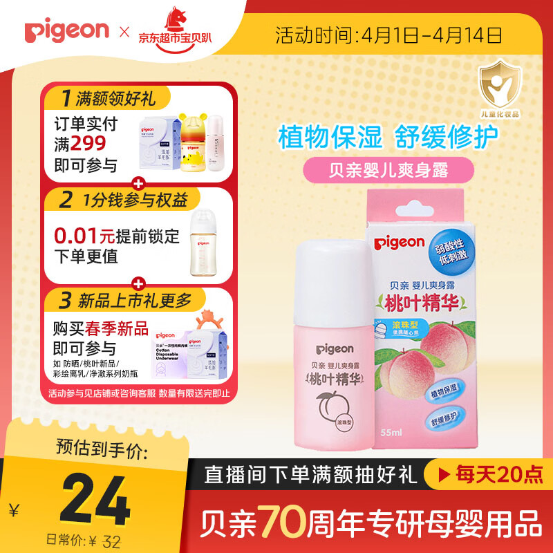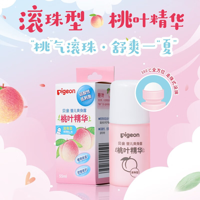 贝亲(Pigeon)桃子水液体婴儿爽身露滚珠型青少年腋下留香清新干爽净味便携55ml