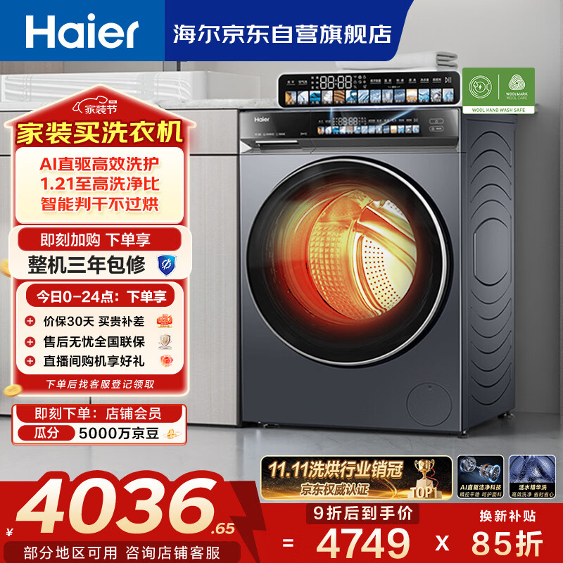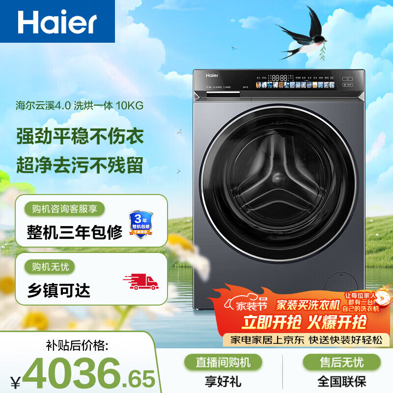 海尔(Haier)云溪4.0 滚筒洗衣机全自动带烘干 10公斤洗烘一体超薄家用 家电国家补贴 京东自营G583 以旧换新