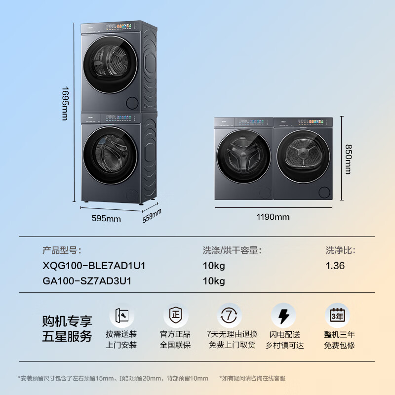 海尔(Haier)云溪5.0 AWE同款 D1洗烘套装10KG 全自动直驱洗衣机+双擎热泵烘干机 家电国家补贴 7AD1+7AD3