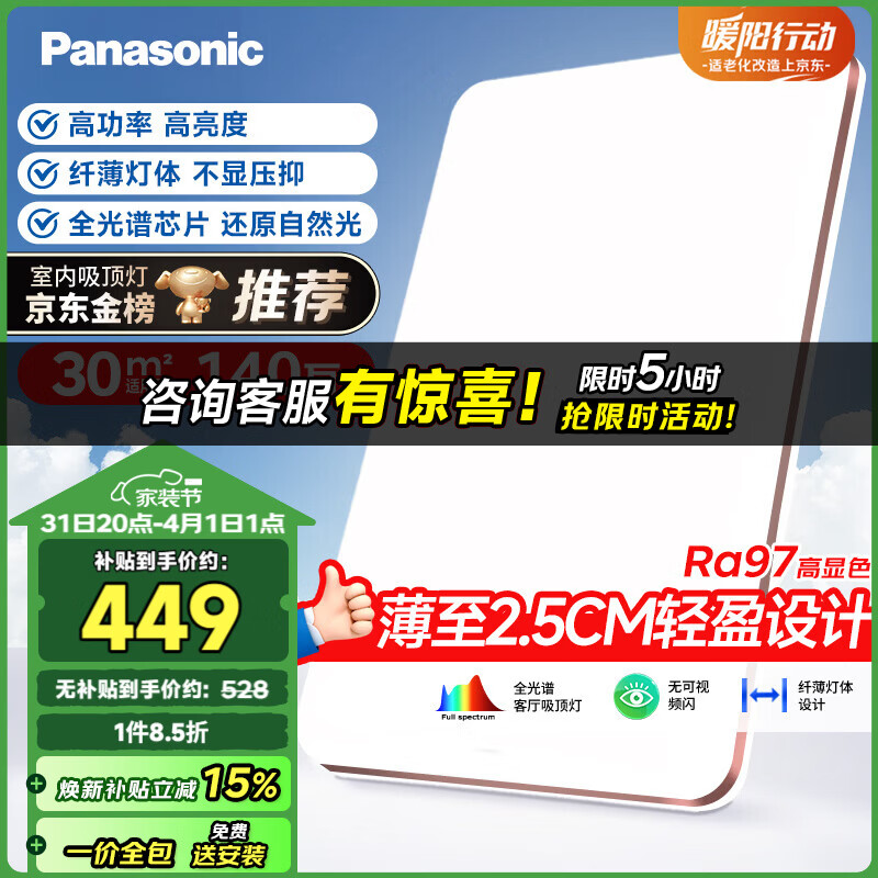 松下(Panasonic)吸顶灯全光谱护眼140W三档调色客厅大灯【补贴】【包安装】