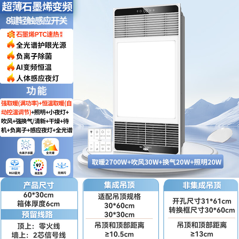 雷士(NVC)风暖浴霸超薄变频系列恒温杀菌换气暖风机Y417卫生间