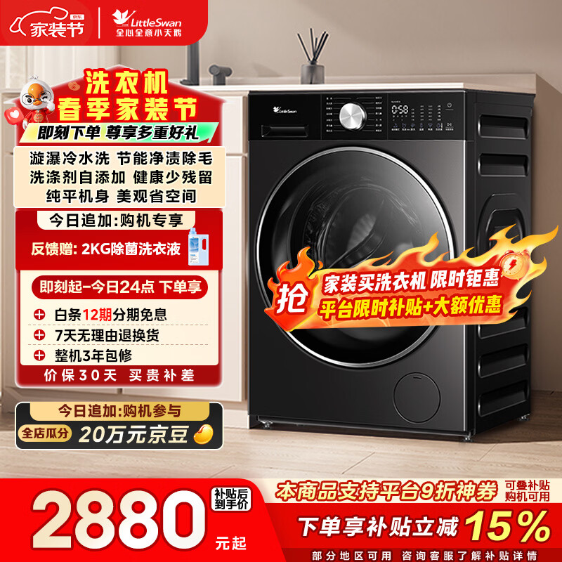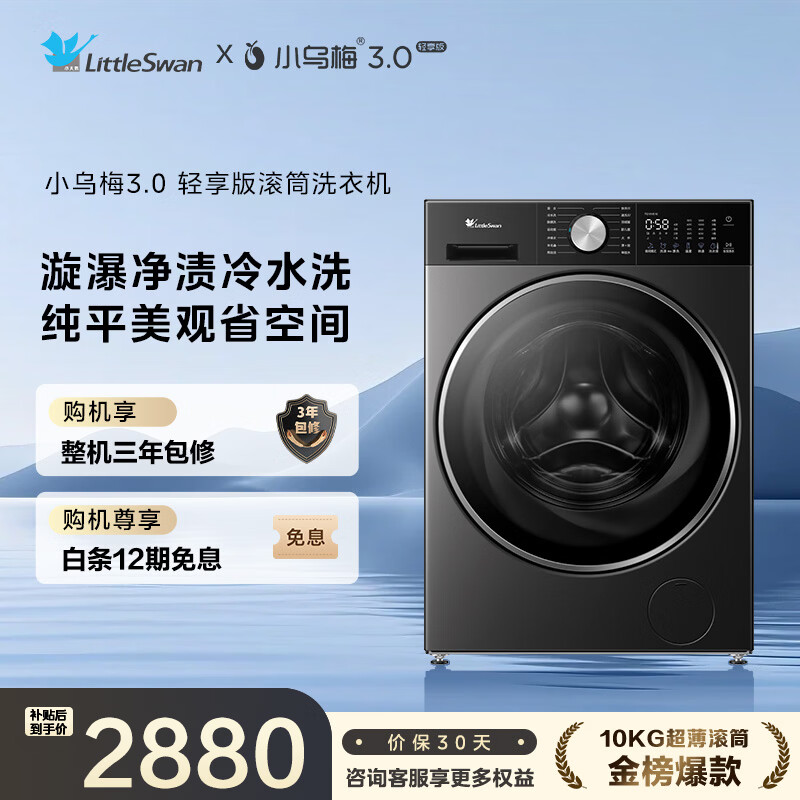 小天鹅(LittleSwan)小乌梅3.0轻享版 滚筒洗衣机全自动 10KG水魔方 超薄 TG10VE10以旧换新 国家补贴 京东自营 内衣洗