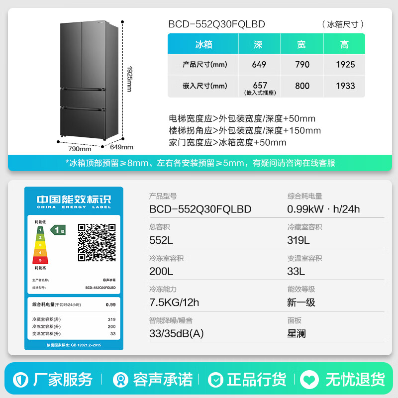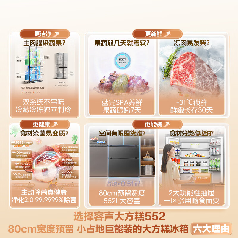 容声526进阶款 大方糕552L法式多门冰箱大容量双系统超薄嵌入家用一级能效灰BCD-552Q30FQLBD国家补贴
