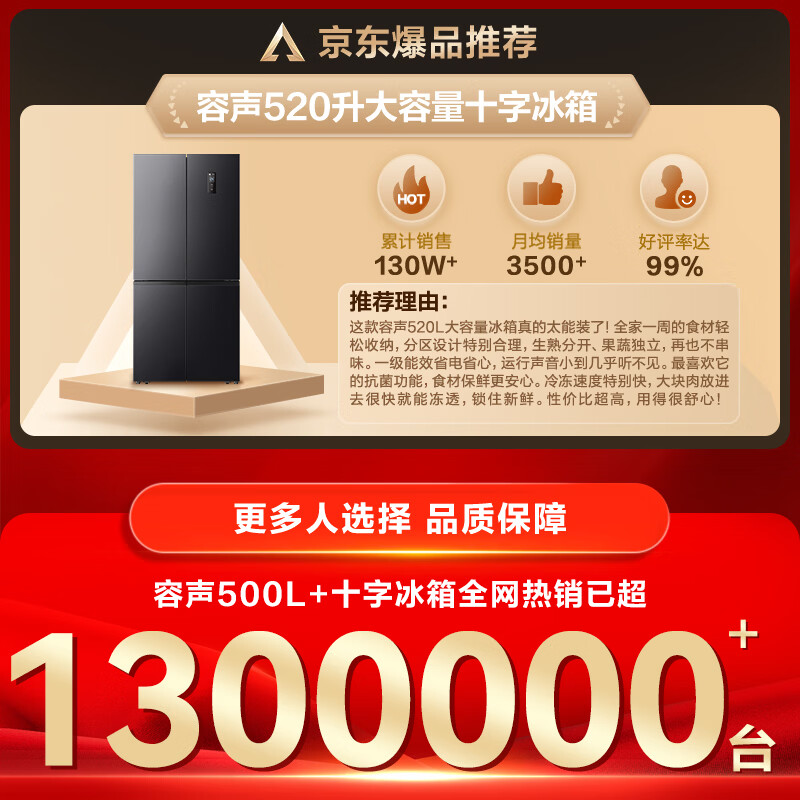 容声520L十字门冰箱大容量超薄一级能效风冷无霜双变频净味四开门家用以旧换新BCD-520WD12FP国家补贴