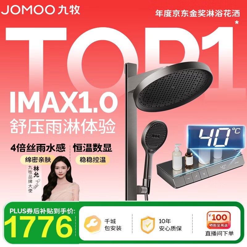 九牧(JOMOO)智能琴键恒温数显丝雨IMAX1.0雨淋旗舰版淋浴套装26195-768/HBS-1