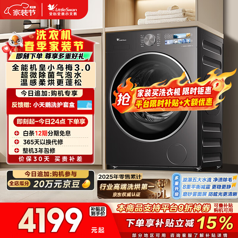 小天鹅(LittleSwan)小乌梅3.0 滚筒洗衣机全自动 带烘干洗烘一体 10KG纯平全嵌 TD10VE40 以旧换新 (支持鸿蒙智联)