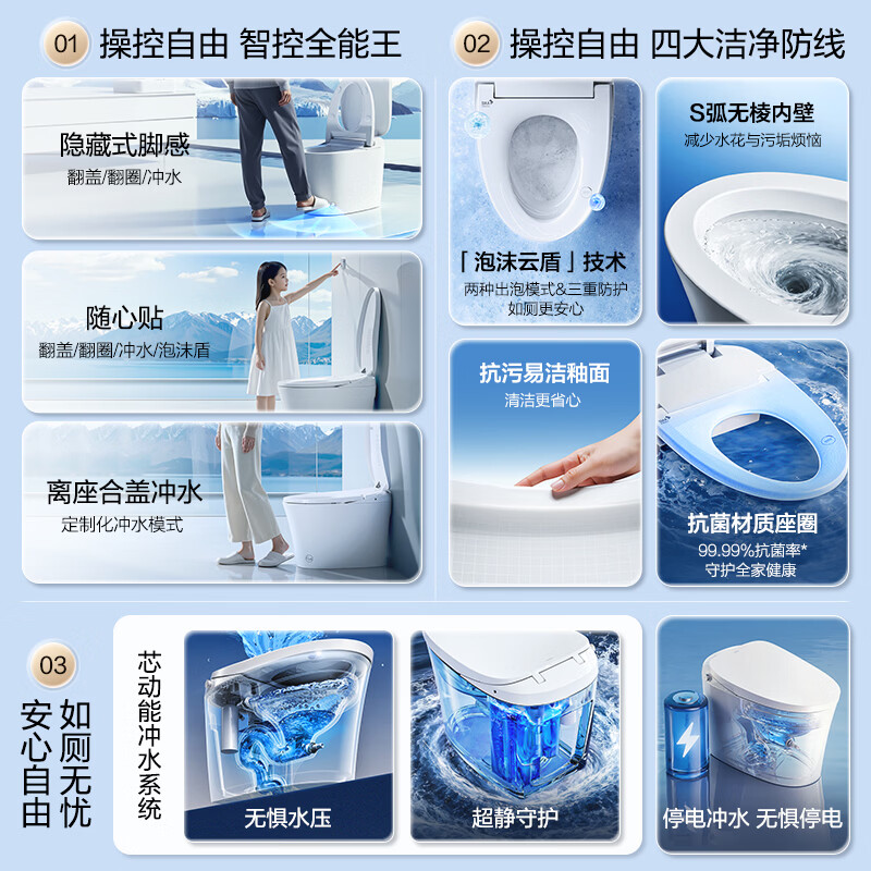 恒洁(HEGII)京东联名轻智能马桶自由座S3Pro脚感翻盖泡沫盾DCQ661P-305