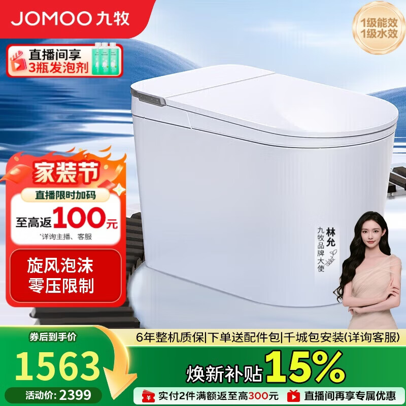 九牧(JOMOO)轻智能马桶白魔方无水压旋风魔力泡SQ8450-S0-CJM305免费送装