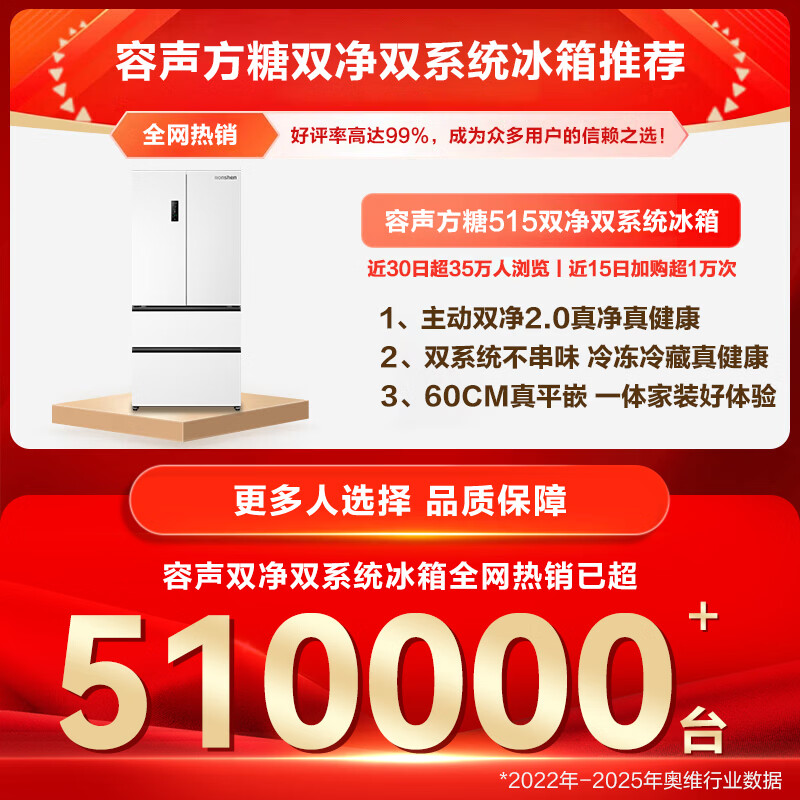 容声方糖515L法式多门冰箱双系统双循环超薄零嵌入式一级能效风冷无霜净味白BCD-515P60FZMAD国家补贴
