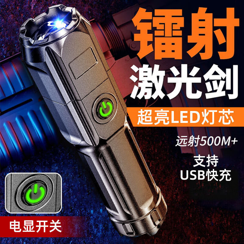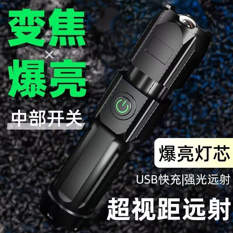 强光手电筒超量长续航变焦远射手电筒小型家用应急户外穿天炮潮流电器 爆亮变焦款-待机99天