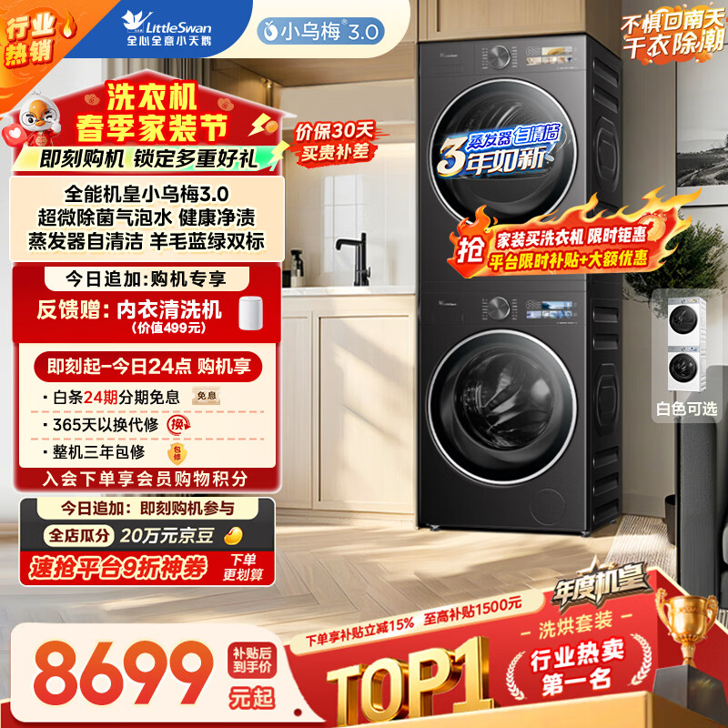 小天鹅(LittleSwan)年度机皇小乌梅3.0洗烘套装10KG滚筒洗衣机全自动+热泵烘干机TG10VE40+E40以旧换新(支持鸿蒙智联)