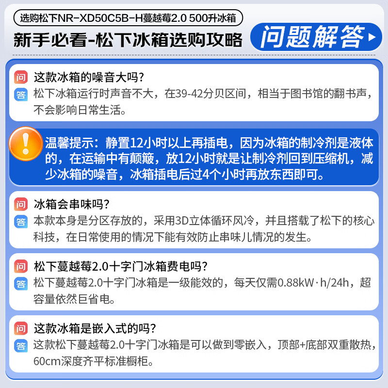 松下(Panasonic)Xtra蔓越莓2.0十字门500L冰箱四开门家用超薄零嵌入自动制冰一级能效NR-XD50C5B-H【国家补贴】
