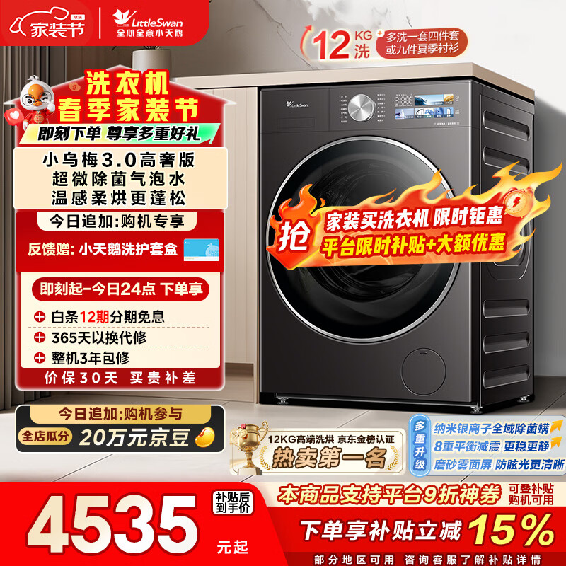 小天鹅(LittleSwan)小乌梅3.0高奢版 滚筒洗衣机全自动 带烘干洗烘一体 12KG超大容量 TD12VE40PRO 以旧换新 京东自营