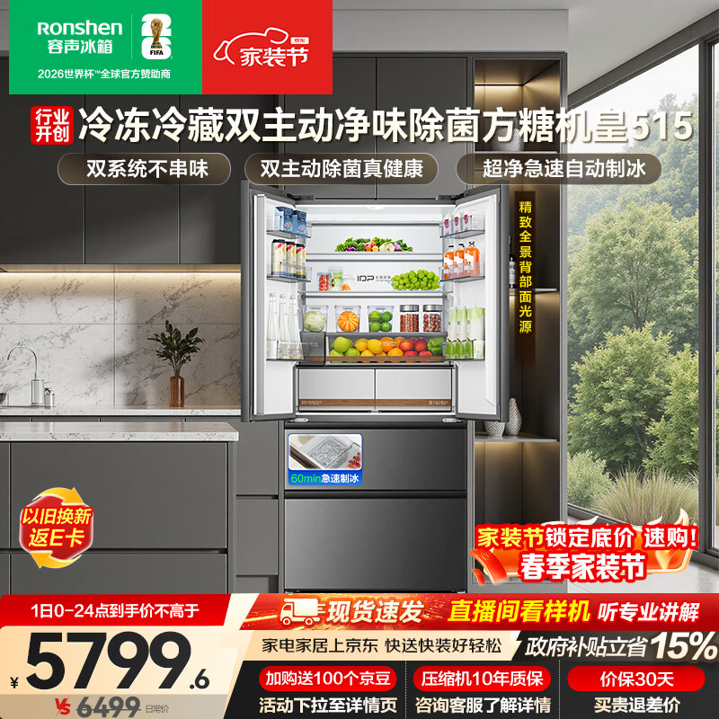 容声方糖机皇515L法式多门冰箱双系统超薄零嵌入式一级能效自动制冰灰BCD-515P60FZNAD国家补贴世界杯