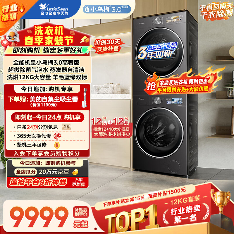 小天鹅(LittleSwan)小乌梅3.0高奢版 洗烘套装 12KG大容量 滚筒洗衣机全自动+变频热泵烘干机 VE40PRO+40PRO