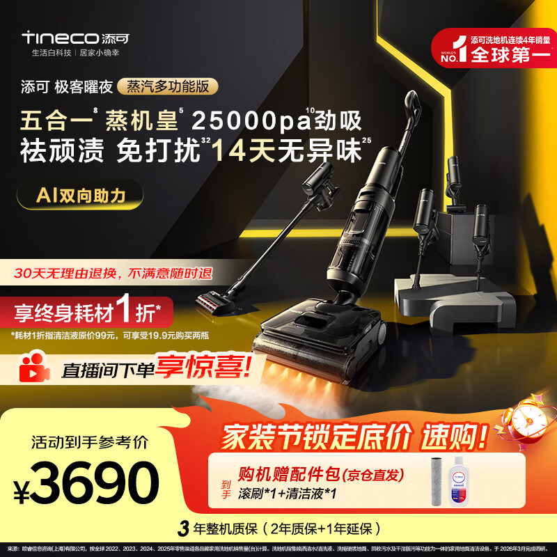 添可极客曜夜蒸汽多功能版【160℃蒸汽除污 1机5用 AI助力】0缠毛躺平蒸汽洗地机吸拖一体扫地机器人