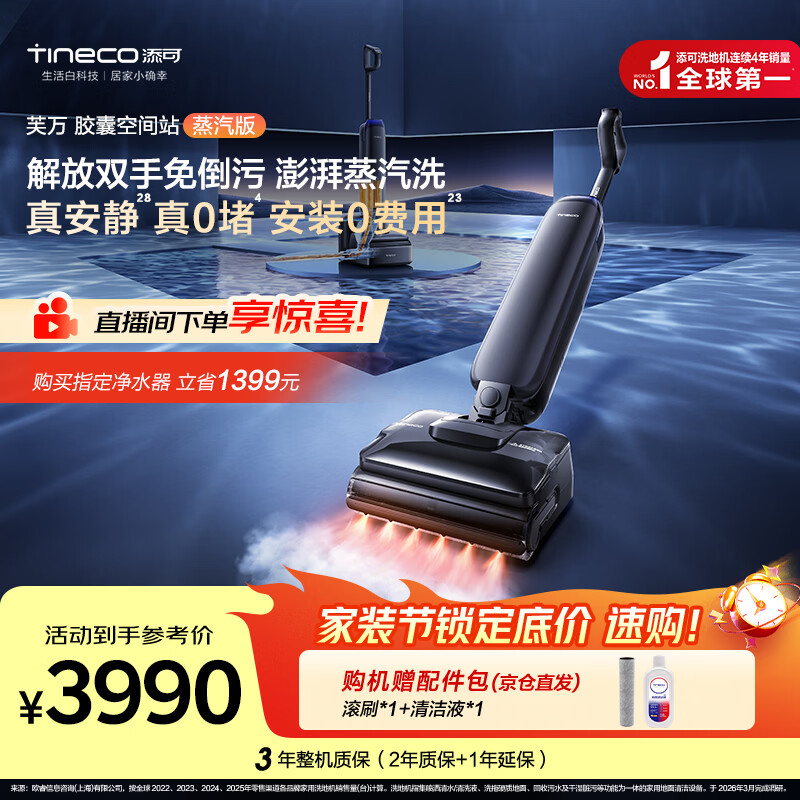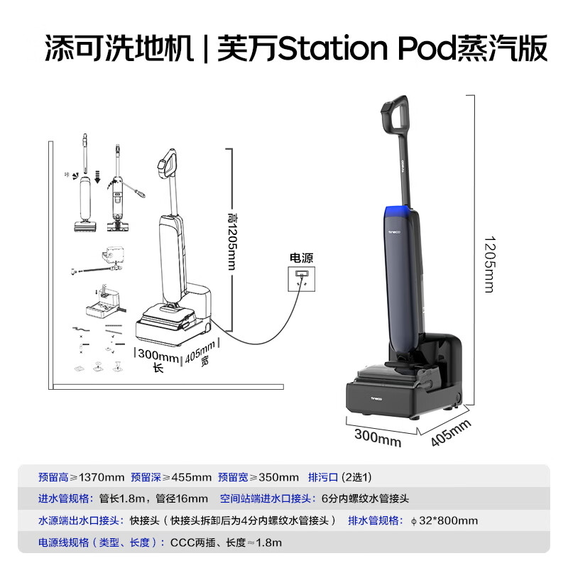添可【一价全包】芙万StationPod蒸汽版【160℃蒸汽洗 自动上下水】蒸汽洗地机基站吸拖一体