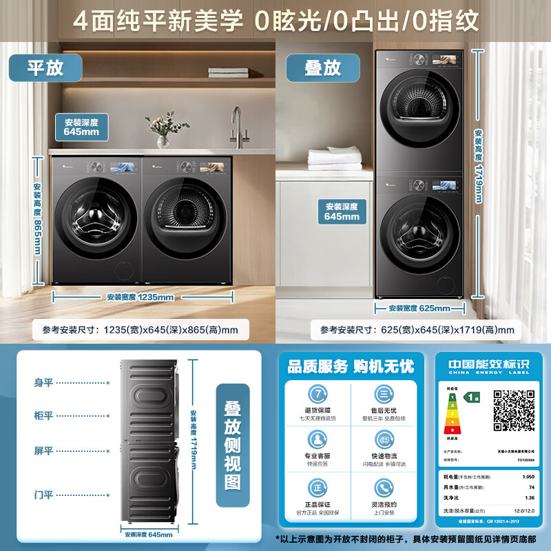 小天鹅(LittleSwan)小乌梅5.0高奢版 洗烘套装 12KG大容量滚筒洗衣机全自动+双转子热泵烘干机TG12EK60+12K60