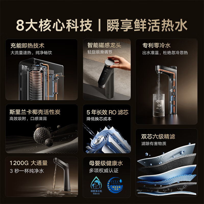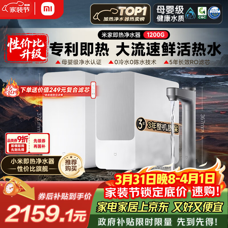 米家小米【即热升级旗舰款】净水器1200G 家用厨下专利充能鲜热技术 5年长效RO膜反渗透 MRH1242