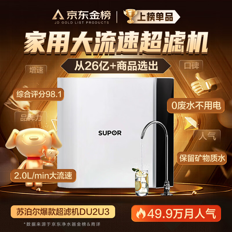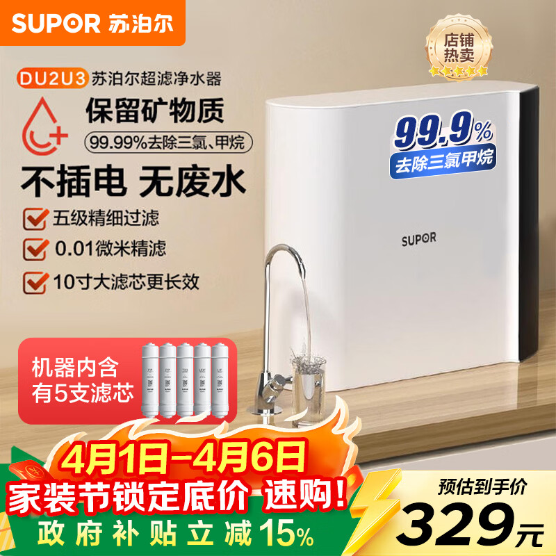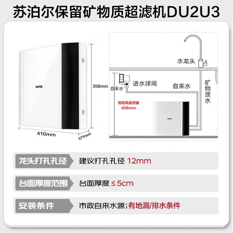 苏泊尔(SUPOR)净水器家用超滤机滤水器厨下式自来水净化器DU2U3厨房净水器水龙头台式过滤器净水机