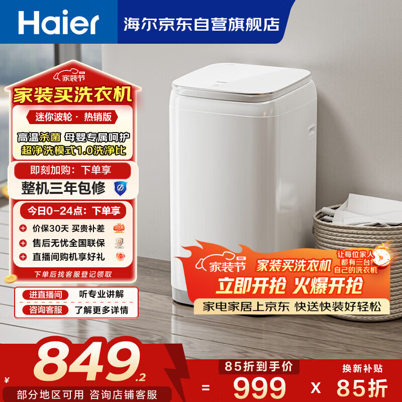 海尔(Haier)迷你波轮全自动洗衣机 3KG小型婴儿内衣洗 高温除菌 租房一人 家用家电补贴XQBM30-R368