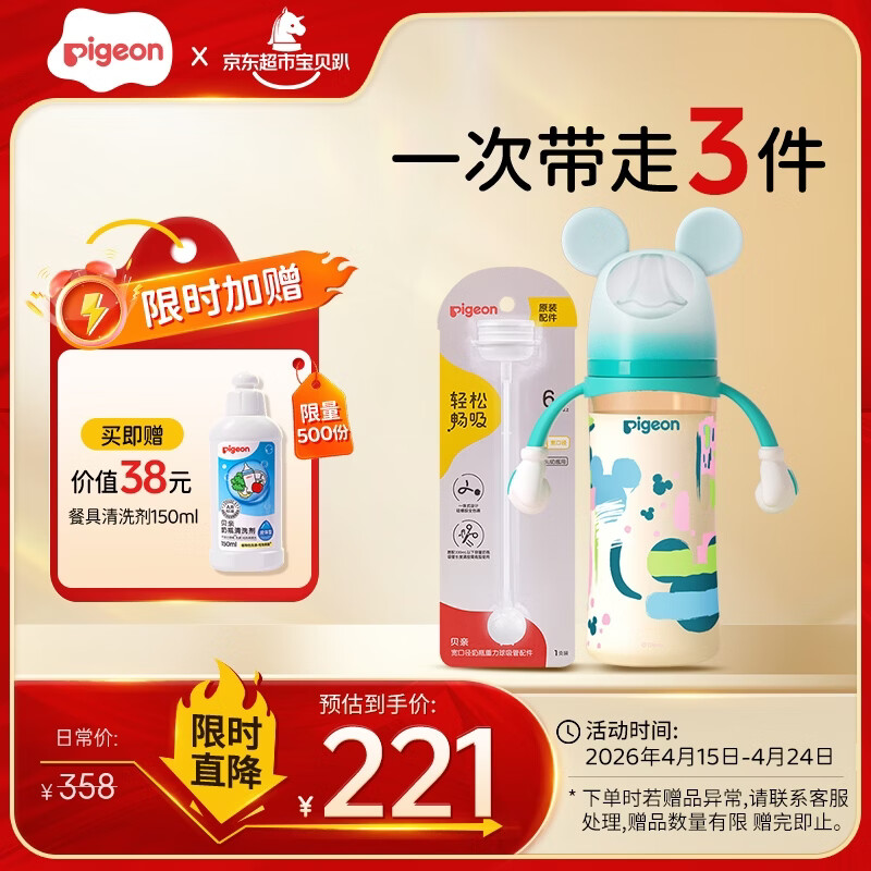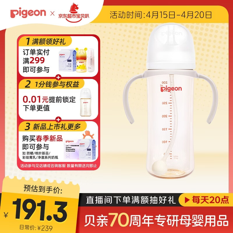 贝亲(Pigeon)PPSU宽口径防胀气奶瓶240ml L号奶嘴 6个月+ AA192