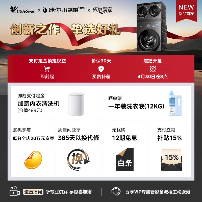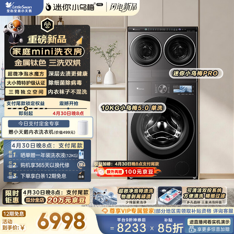 小天鹅(LittleSwan)迷你小乌梅PRO+小乌梅5.0 家庭mini洗衣房 滚筒洗衣机全自动 2+10KG TG10EK60 可叠放 内衣洗 三筒