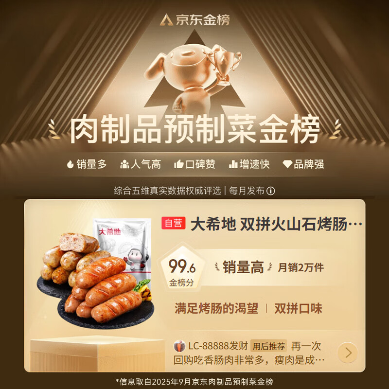 大希地火山石烤肉肠2032g/40根 双口味 早餐火腿肠香肠烧烤空气炸锅食材