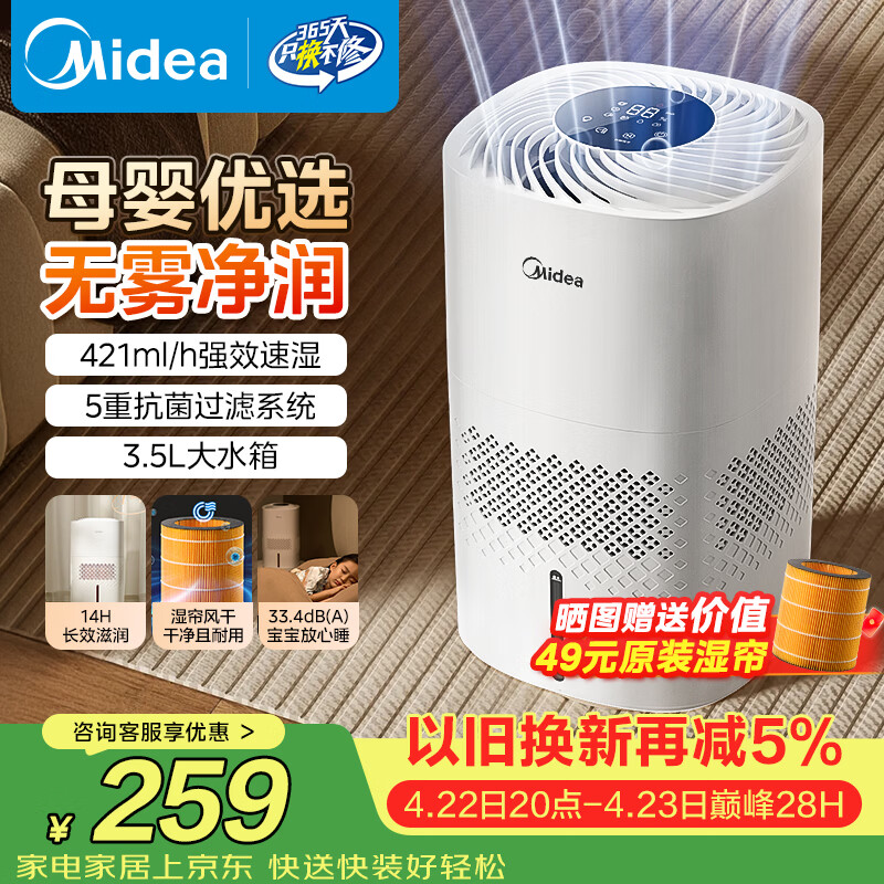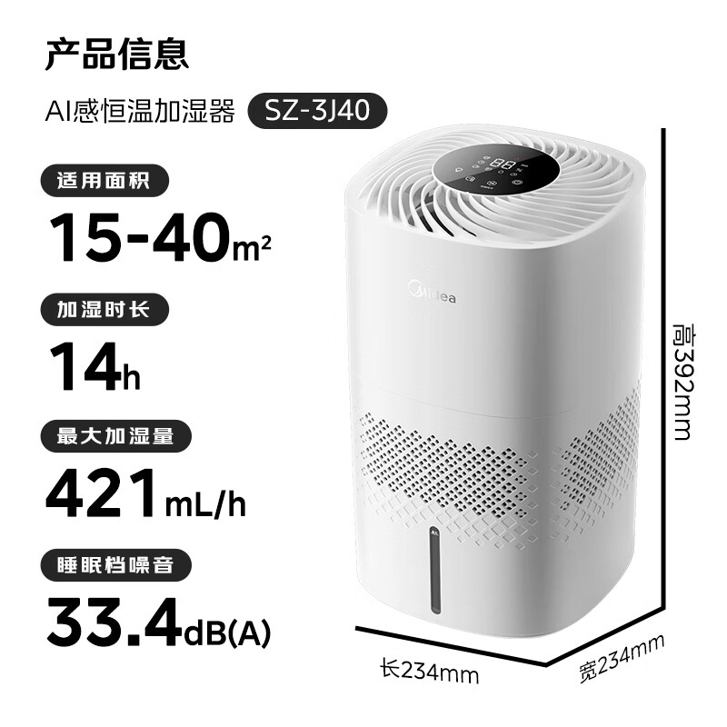 美的(Midea)【冷蒸发静音】空气无雾加湿器家用卧室孕妇婴幼静音抑菌桌面小型便携办公室神器生日礼物SZ-3J40