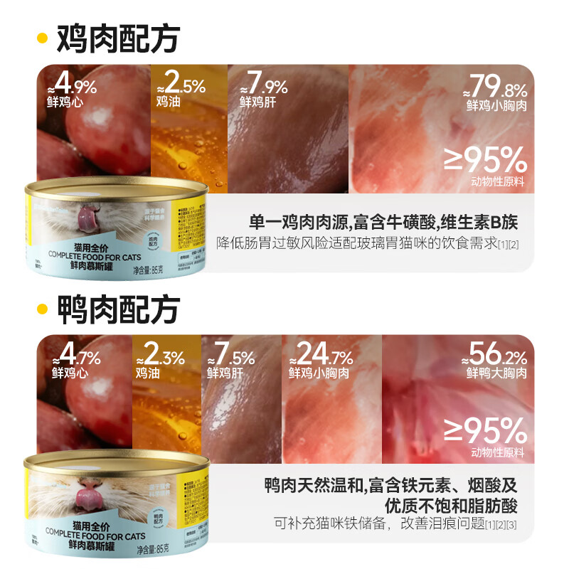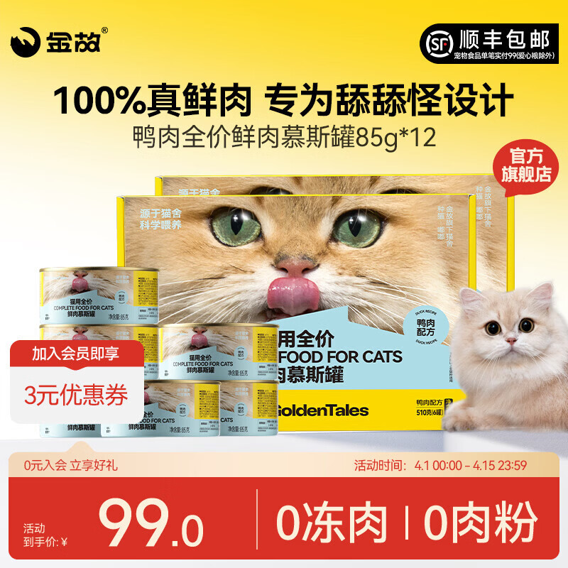 金故猫罐头全价主食慕斯鸡肉鸭肉鲜肉补水成猫幼猫湿粮猫粮呵护泌尿 鸭肉口味(85g*12罐) 85g