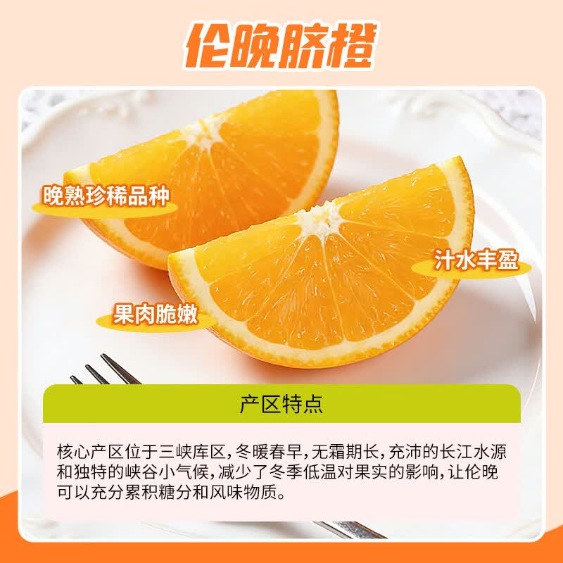 京鲜生 秭归伦晚脐橙/甜橙 铂金果 净重4.5斤 单果180g起 橙子水果礼