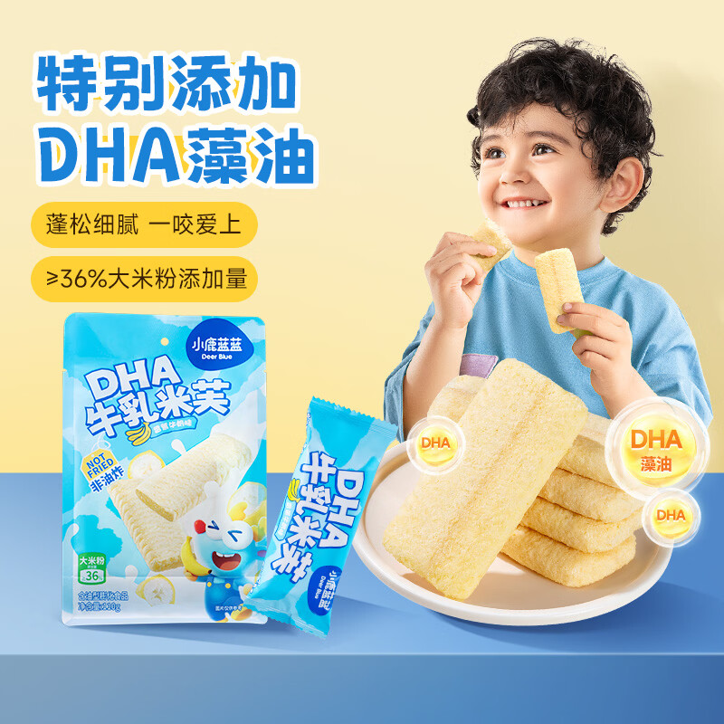 小鹿蓝蓝DHA牛乳米芙宝宝开袋即食小零食磨牙饼干儿童米芙香蕉牛奶味110g