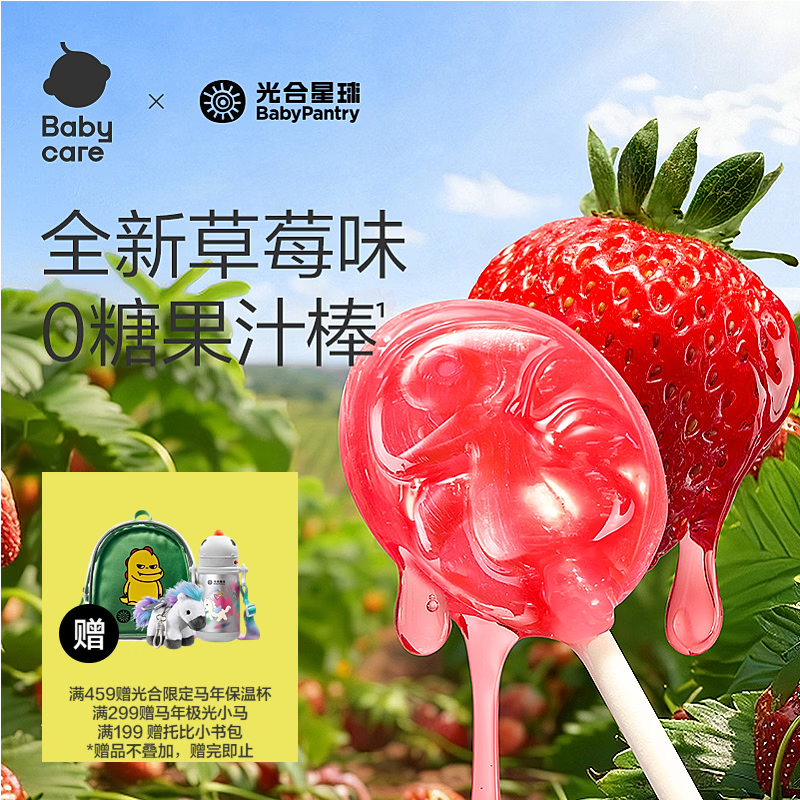 光合星球(THE BABYPANTRY) 光合星球babycare儿童零食无糖棒棒糖无添加 护牙棒棒糖果零食草莓味78g