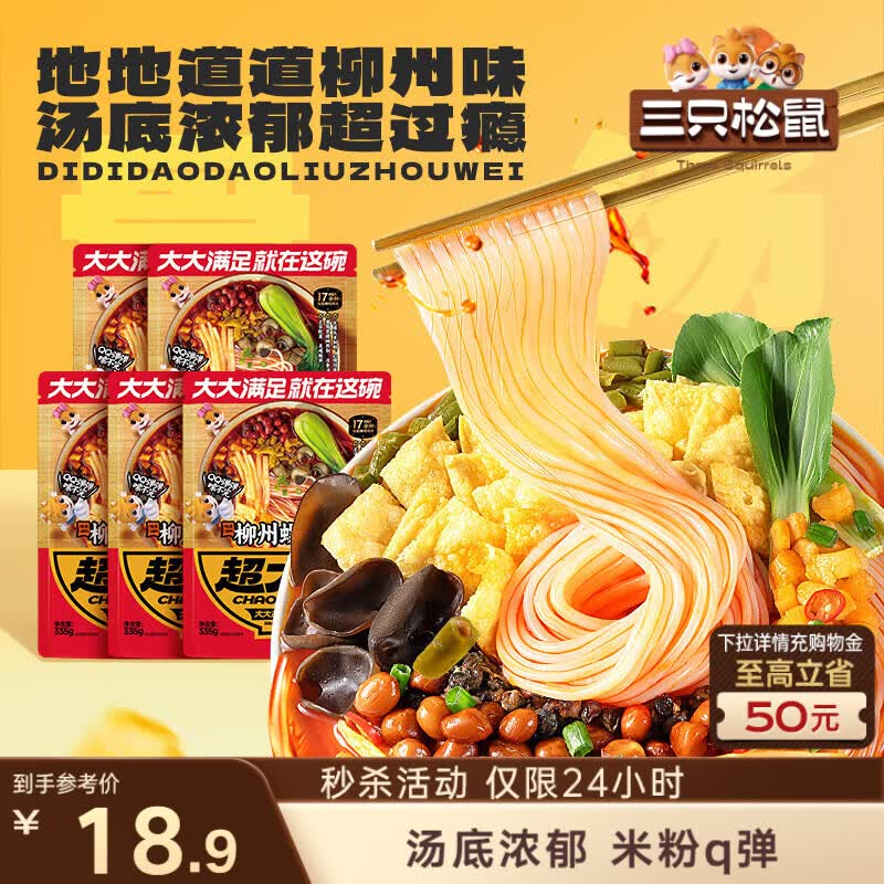 三只松鼠螺蛳粉335g*5袋箱装米粉米线广西柳州特产酸辣夜宵方便速食零食