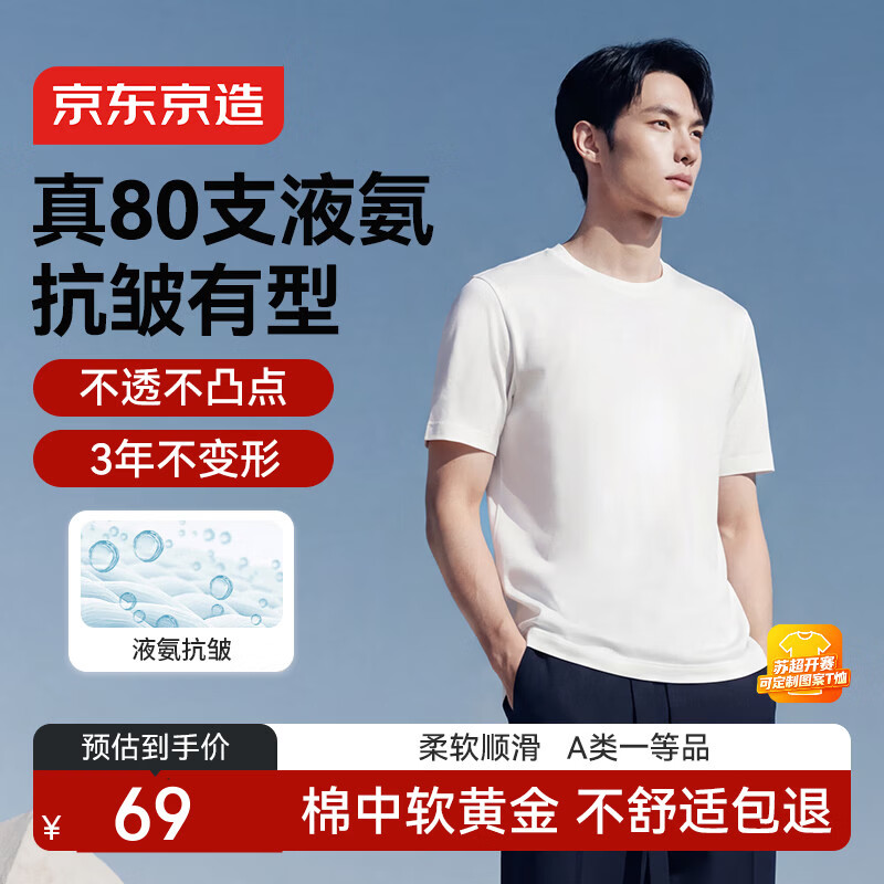 京东京造80支液氨短袖男士t恤打底衫内搭春季新款男装衣服轻奢抗皱 白XL